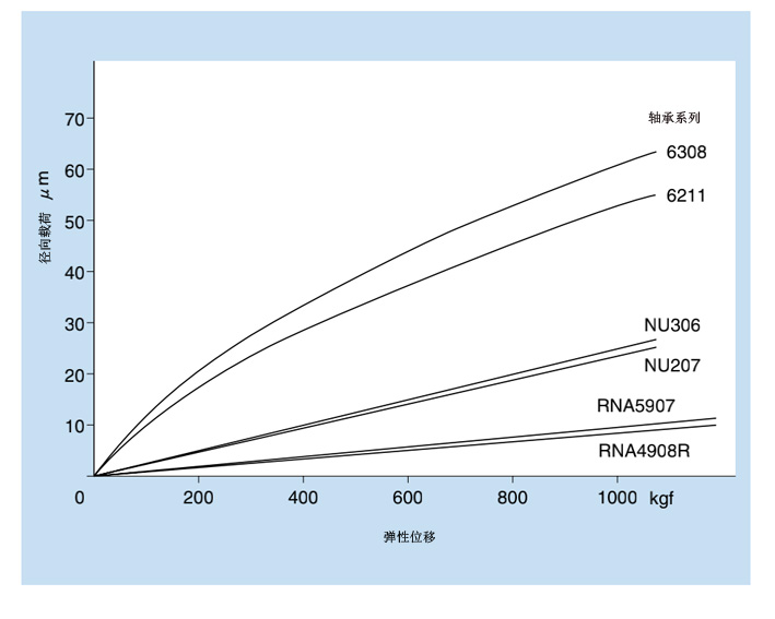 下圖顯示了徑向載荷施加到具有類似基本額定載荷的各種軸承上時的彈性位移。