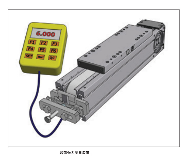 通過NTN SNR測量裝置設置正確的齒帶張力,借助力傳感器調整精確張力(如下圖)。