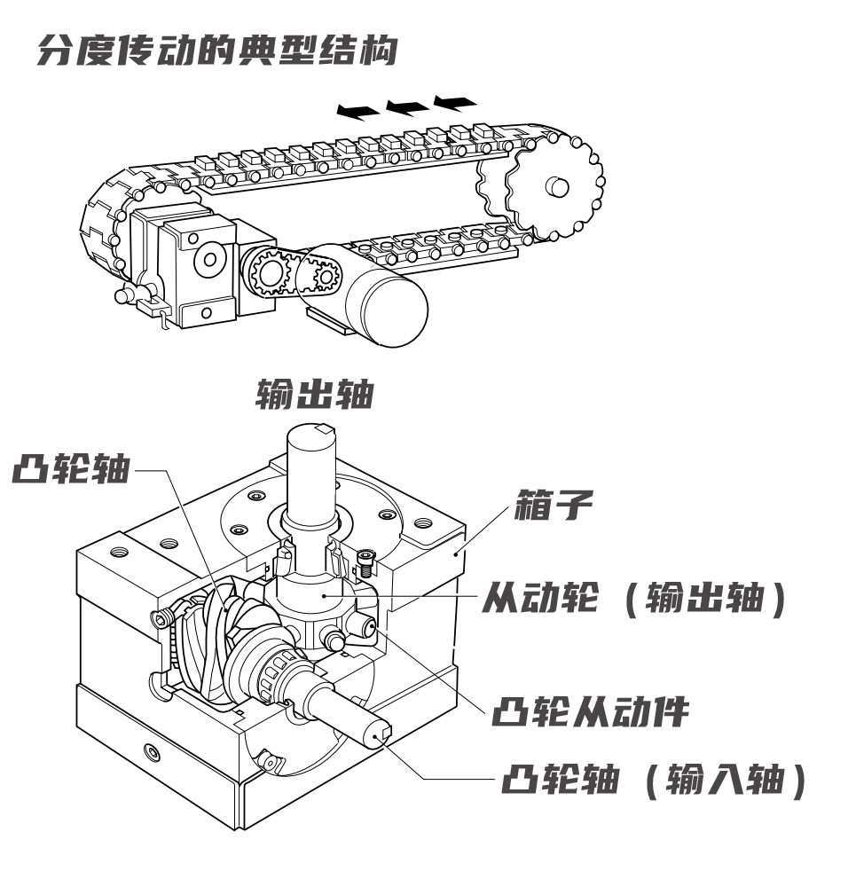 當自動機械需要以高速和高精度執行如間歇運動、振蕩和連續旋轉時,需要一些特殊的設計來執行這些操作,分度