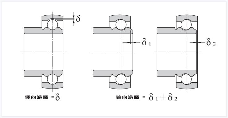 初始間隙和工作(有效)間隙之間的內部間隙差(過盈配合引起的間隙減少量,或由于內外環之間的溫差引起的間隙變化)可以通過公式 δ?ff = δ? - ( δf + δ? ) 計算,其中:δ?ff 代表有效內部間隙,單位毫米;δ? 代表軸承內部間隙,單位毫米;δf 代表因干涉而減少的間隙量,單位毫米;δ? 代表內外環溫差引起的間隙減少量,單位毫米。