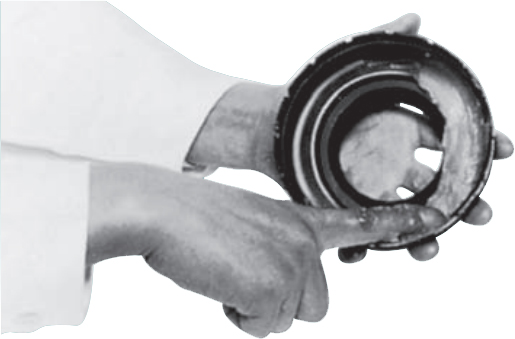 4、接下來,取下沿軸穿過的蓋,按如下方式將其壓入殼體,小心不要用鋼錘直接敲擊鋼蓋表面,而是在中間使用合成樹脂或木塊,不要只敲打一個地方,而是將蓋四周輕輕敲打,直到它牢固地固定在殼體中,如上圖所示。