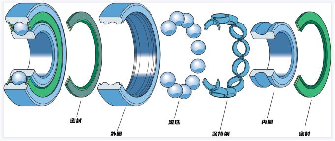 滾動元件(滾珠或滾子)在內(nèi)圈和外圈之間傳遞載荷,通常,滾動元件使用與軸承套圈材質(zhì)相同的鋼,若有需要,也可以使用陶瓷材質(zhì),陶瓷滾動元件的軸承又被稱為混合陶瓷軸承,而且使用的越來越普遍。