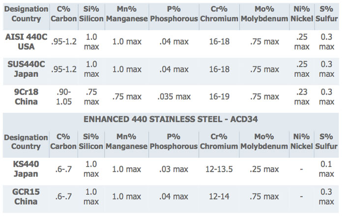 雖然低精度軸承不存在問題,但在高精度(ABEC 5P、7P、9P)微型軸承中,這種尺寸穩定性不足可能會導致出現問題,為了消除這種不必要的冶金生長,鋼必須進行熱穩定,通過在-80°C的低溫下反復冷卻和回火,以將大部分殘余奧氏體轉變為馬氏體,下表顯示了上述不銹鋼合金的化學成分。