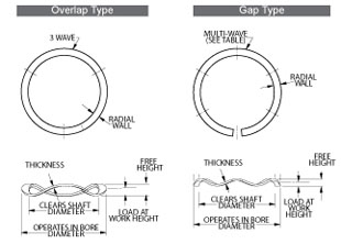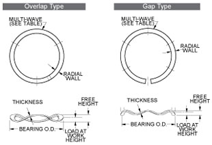 間隙型波形彈簧的外徑將適合孔中每側0.020松,內徑每邊比軸高0.010,當彈簧偏轉時,外徑和內徑變大,直到外徑接觸孔,當外徑壓在孔上時,持續偏轉會使間隙端部移動得更近,重疊型波形彈簧以類似的方式允許這種類型的循環動作。