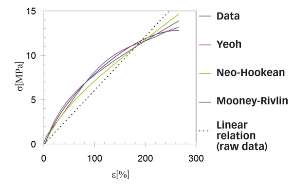 今天進(jìn)行的許多工程計(jì)算都基于這樣的假設(shè),即材料的線(xiàn)性和彈性行為,力和位移線(xiàn)性地依賴(lài)于一個(gè)常數(shù),即剛度。橡膠材料通常表現(xiàn)為非線(xiàn)性,僅僅定義一個(gè)常數(shù)來(lái)將力與位移或應(yīng)力與應(yīng)變聯(lián)系起來(lái)是不夠的,相反,橡膠需要能夠處理多軸非線(xiàn)性的更復(fù)雜的本構(gòu)模型。