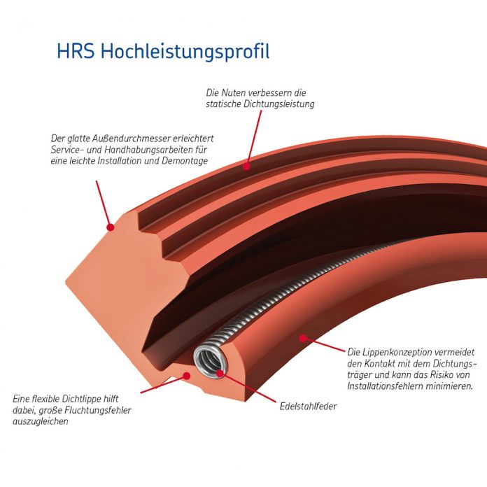HRS密封件也可作為分體式,可采用帶開口連接點的拉伸彈簧的切割墊圈的形式,拉伸彈簧和墊圈可圍繞固定部件引導,拉伸彈簧端部通過彈簧鎖簡單地擰入到位,而墊圈不需要任何進一步處理,安裝時端部之間的切割間隙自動關閉,這樣就不需要復雜的粘接或焊接,從而使安裝更加容易。