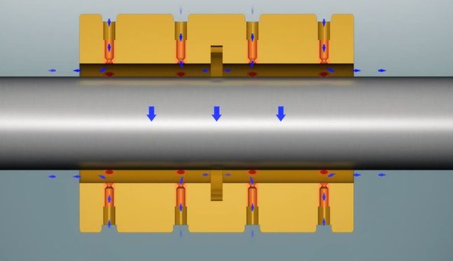 空氣箔片軸承是一種氣體軸承,其設計利用氣膜中的壓力將運動表面和靜止表面分開,從而實現(xiàn)低摩擦、高速旋轉,氣體軸承運行所需的壓力可以從外部提供,也可以通過軸承本身的旋轉在內(nèi)部產(chǎn)生,空氣箔片軸承使用后一種方法,因此,它們是一種動態(tài)氣體軸承。