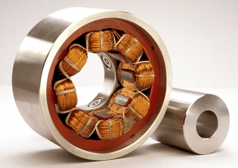 磁性軸承使用磁懸浮來支撐旋轉軸,大多數(shù)磁性軸承設計使用圍繞軸承殼和包含鐵磁性材料的軸布置的磁體,磁鐵吸引軸,當作用在軸上的力平衡時,它被保持遠離外殼,允許低摩擦旋轉。這種設計使用由電子控制系統(tǒng)供電的電磁鐵,該系統(tǒng)可以調(diào)整電磁鐵產(chǎn)生的力,外殼中的傳感器持續(xù)監(jiān)測軸的位置,控制系統(tǒng)改變輸送到磁體的功率,以將軸保持在最佳位置。