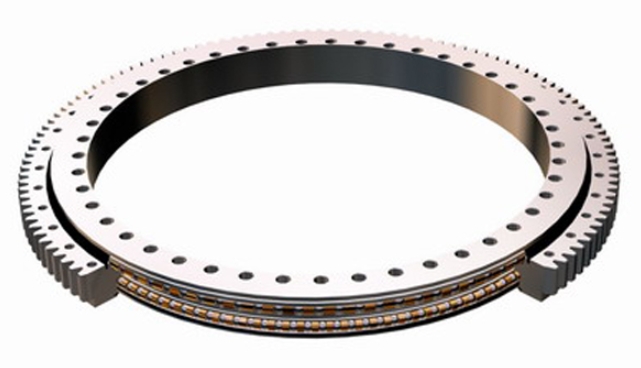 舍弗勒還根據(jù)公司創(chuàng)新的滾珠設(shè)計(jì)理念開發(fā)了一種全新的轉(zhuǎn)盤軸承設(shè)計(jì),這項(xiàng)創(chuàng)新基于雙列推力角接觸球軸承,采用“O”形布置,采用新的裝配方法和獨(dú)特的滾動元件,傳統(tǒng)滾珠的未受負(fù)載的部分被移除,大約15%的球直徑從兩側(cè)被切掉,結(jié)果是一個兩邊都變平的球,比傳統(tǒng)的滾珠窄約30%(因此更輕)。滾珠提供了全球形滾珠的所有軸向載荷處理能力,但允許整體軸承寬度和質(zhì)量減少15%至20%,并減少摩擦,這不僅節(jié)省了寶貴的設(shè)計(jì)空間,而且意味著球輥的“細(xì)長”形狀與新的裝配方法相結(jié)合,可以增加滾動元件的數(shù)量,這反過來又使軸承的填充能力提高了90%。在相同的設(shè)計(jì)空間中使用更多的滾動元件可以獲得更高的額定載荷和更長的使用壽命。
