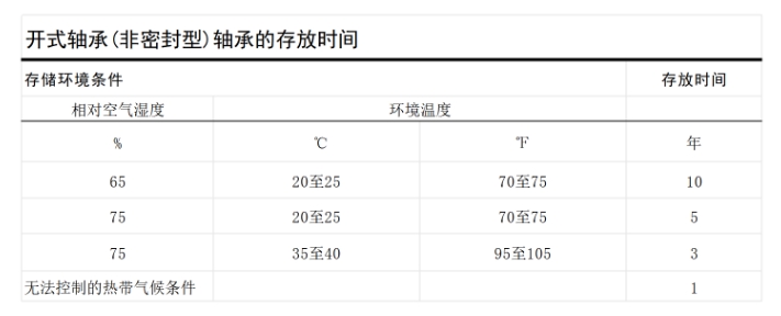 可見,表中所列的是濕度較大的情況下,也可以理解為,這就是我們所說的存放時間的下限。而對于相對更為干爽的環境,軸承的存放時間會更長。