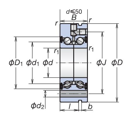 BSF:滾珠絲杠支撐用外圈一體式雙列角接觸球軸承單元,帶螺栓安裝孔