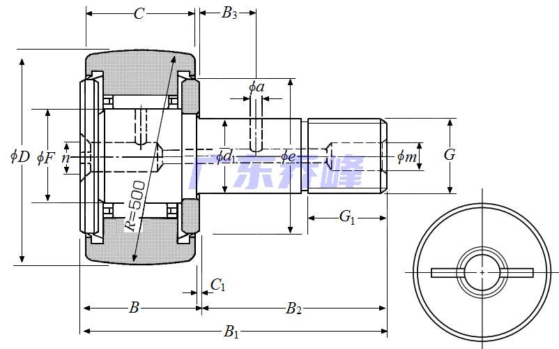| 凸輪從動螺柱式滾輪軸承 - 球面外圈,CR..LL型 - 尺寸 | |